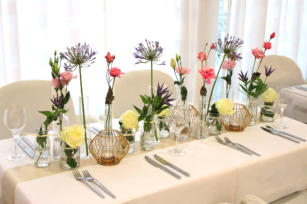 Ob prachtvolle Hochzeitstafel mit üppigem Blumenarrangement oder eine schlichte Hochzeitsdekoration mit kleinem Gesteck die Dekoration der Hochzeit muss zum Paar passen !Wir bieten Ihnen festliche Tischdekorationen für jeden Anlass, die wir in unseren eigenen Räumlichkeiten speziell für Sie kreieren !
